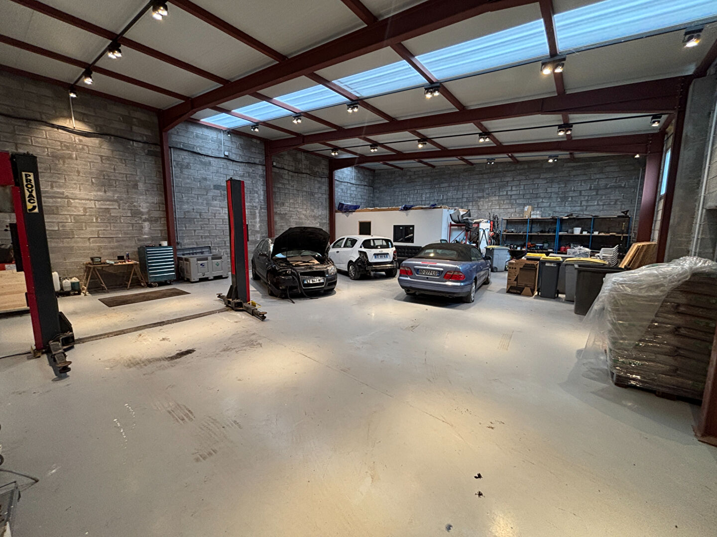 Portail électrique, éclairage et prises de courant dans l'entrepôt.