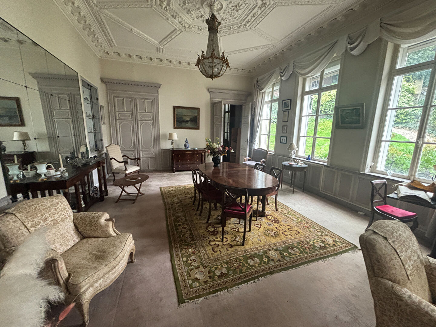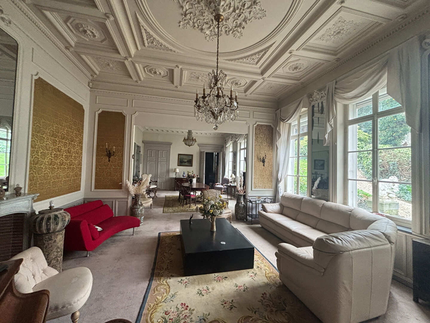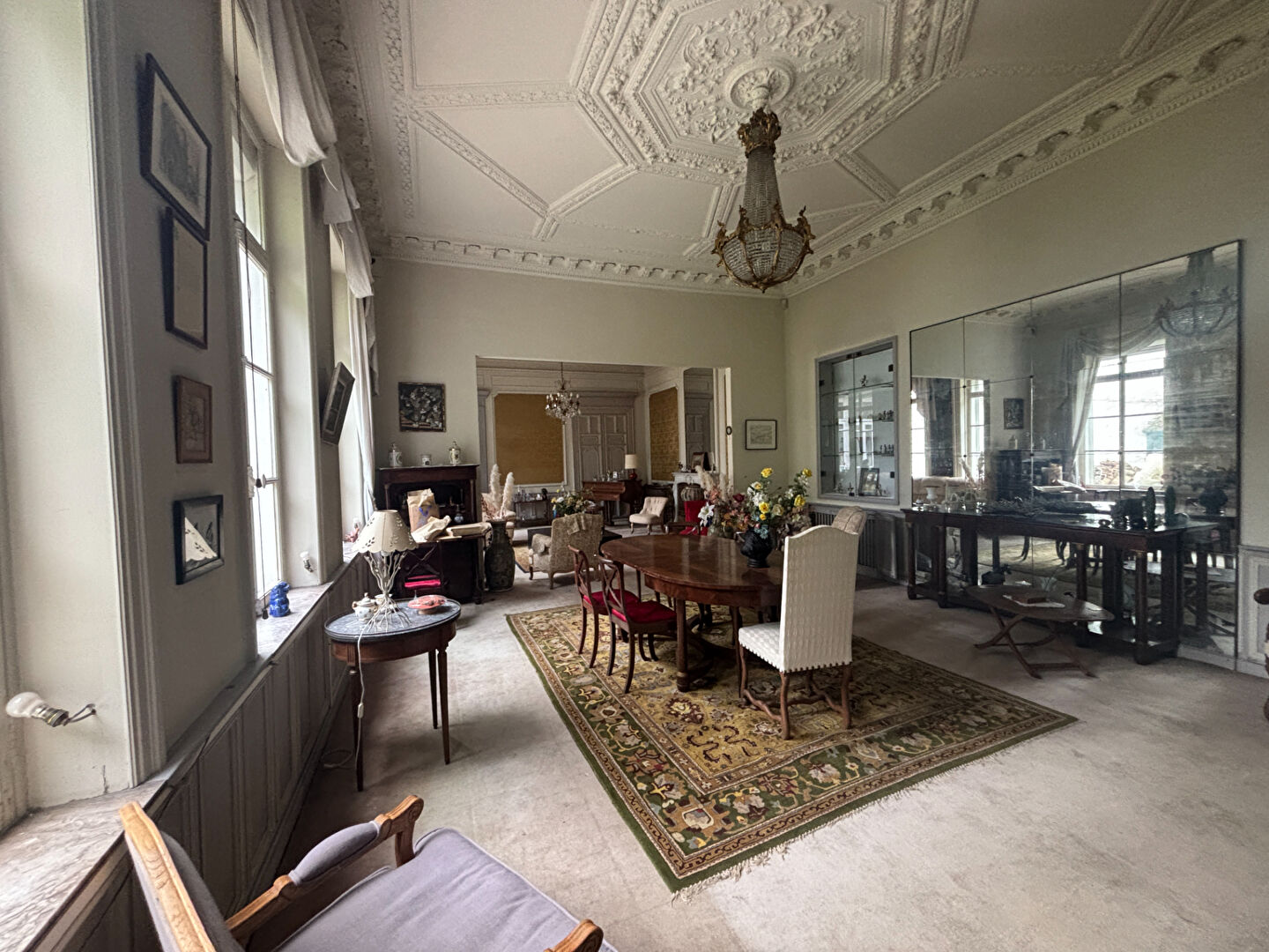 - Des espaces de réception (salon avec cheminée, salle à manger)